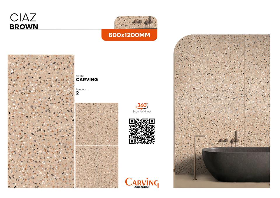 กระเบื้องพอร์ซเลนเซรามิกดูหรูหรา2x4ฟุตลายแกะสลักสีน้ำตาลเข้มกระเบื้องดีไซน์อิตาลีขนาด600x1200มม. สำหรับผนังและพื้น
