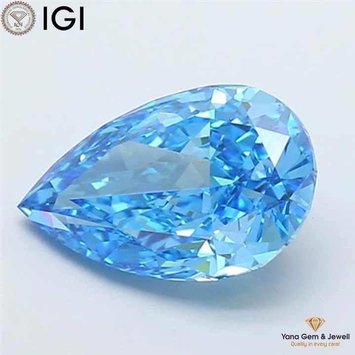 เพชร CVD 3.00 กะรัต ทรงลูกแพร์ พร้อมใบรับรอง IGI สีฟ้าสดใสแฟนซี ความสะอาดระดับ VS2 สำหรับสร้อยข้อมือคุณภาพพรีเมียม