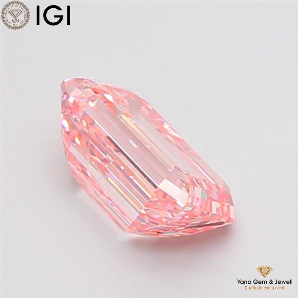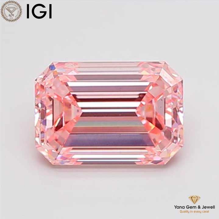 เพชรทรงเอเมอรัลด์ 3.00 กะรัต พร้อมใบรับรอง IGI สีชมพูสดใส ระดับความสะอาด VS2 เพชร CVD ที่เพาะเลี้ยงในห้องปฏิบัติการ สำหรับสร้อยคอแบบโซลิทาร์