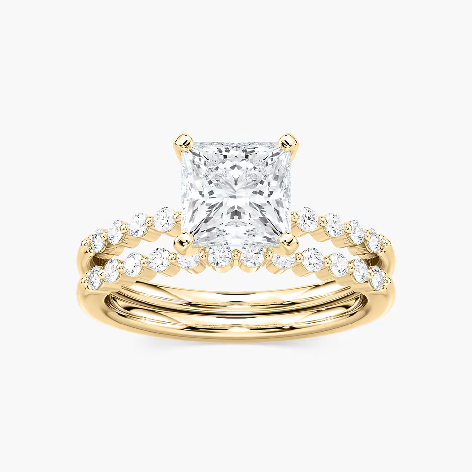 ชุดแต่งงานเพชรทรง Asscher น้ำหนัก 3.00 กะรัต ผลิตในห้องปฏิบัติการ ตัวเรือนทองคำแท้ 14K