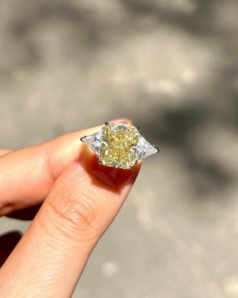 3.00 CTW เปล่งประกายตัดสีเหลืองนกขมิ้นในห้องทดลองปลูกเพชรสามชิ้นแหวนหมั้นหินสีแฟนซีแหวนแต่งงานสีขาวทอง VS1ความชัดเจน