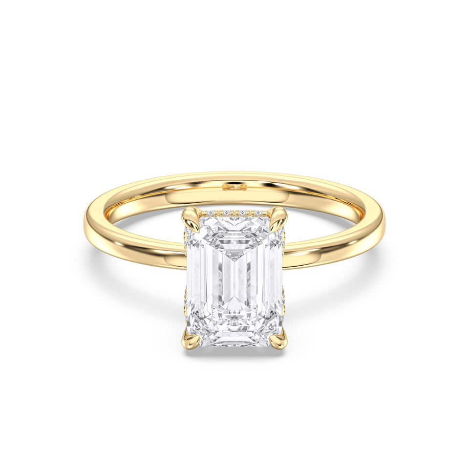 แหวนหมั้นเพชร3.00กะรัต/เทียบกับ F-G เพชรที่ปลูกในแล็บสำหรับผู้หญิงชุดง่ามสีทองมรกต