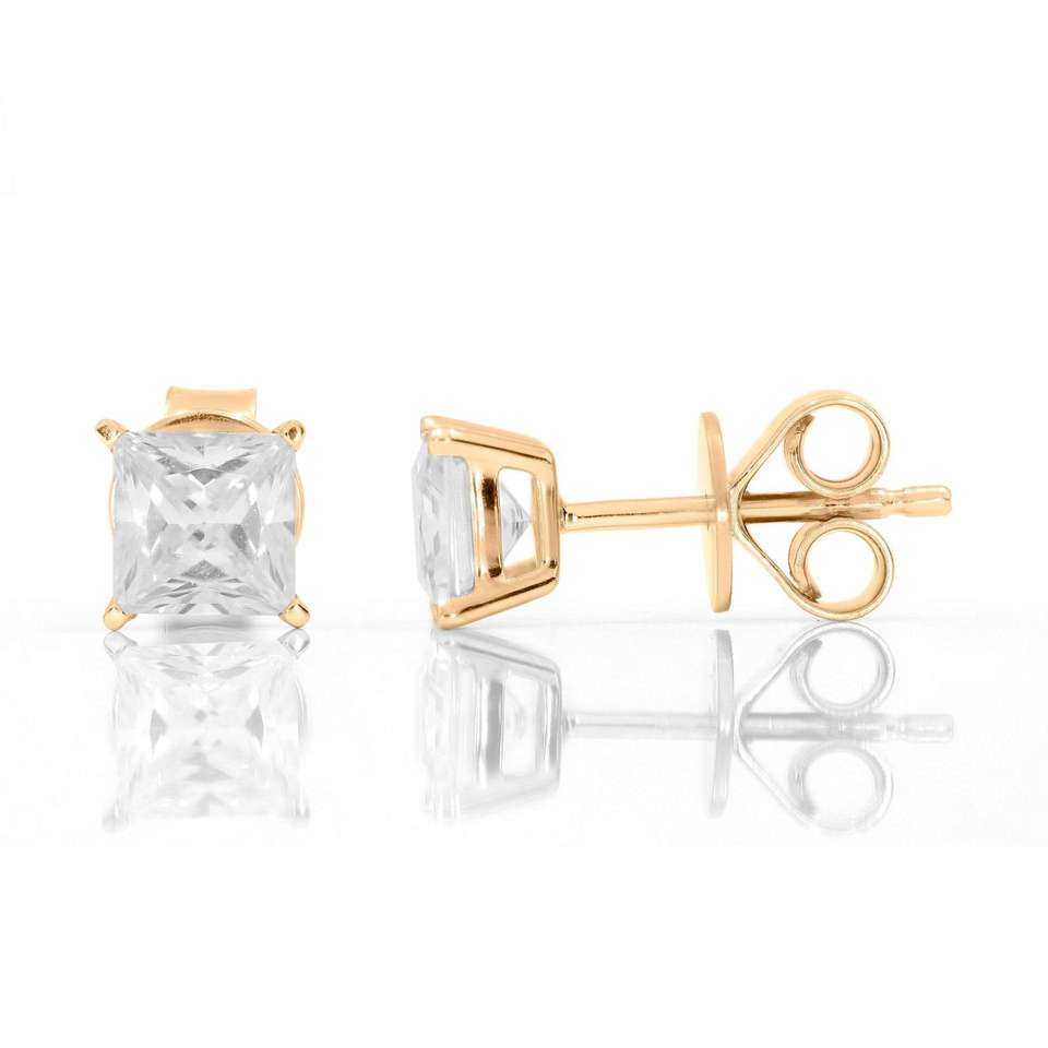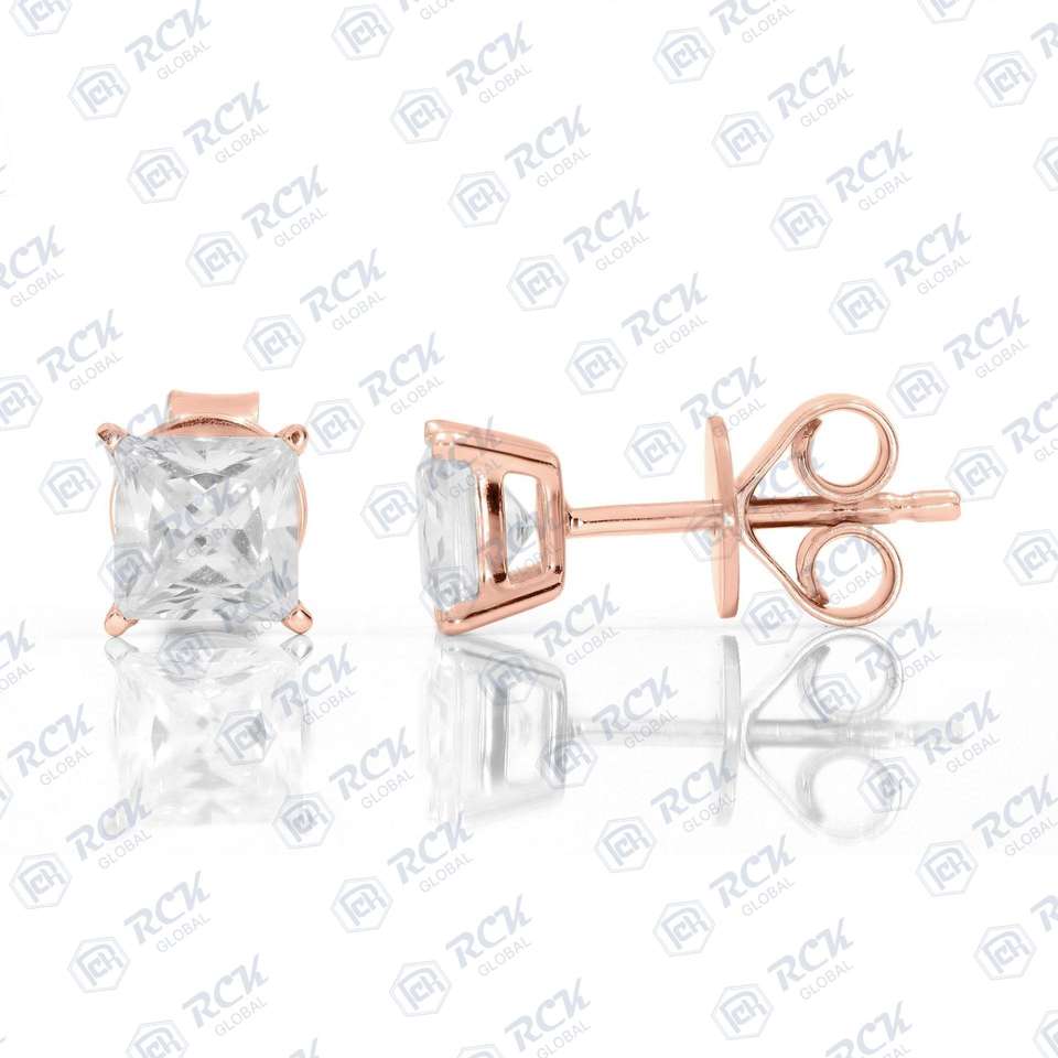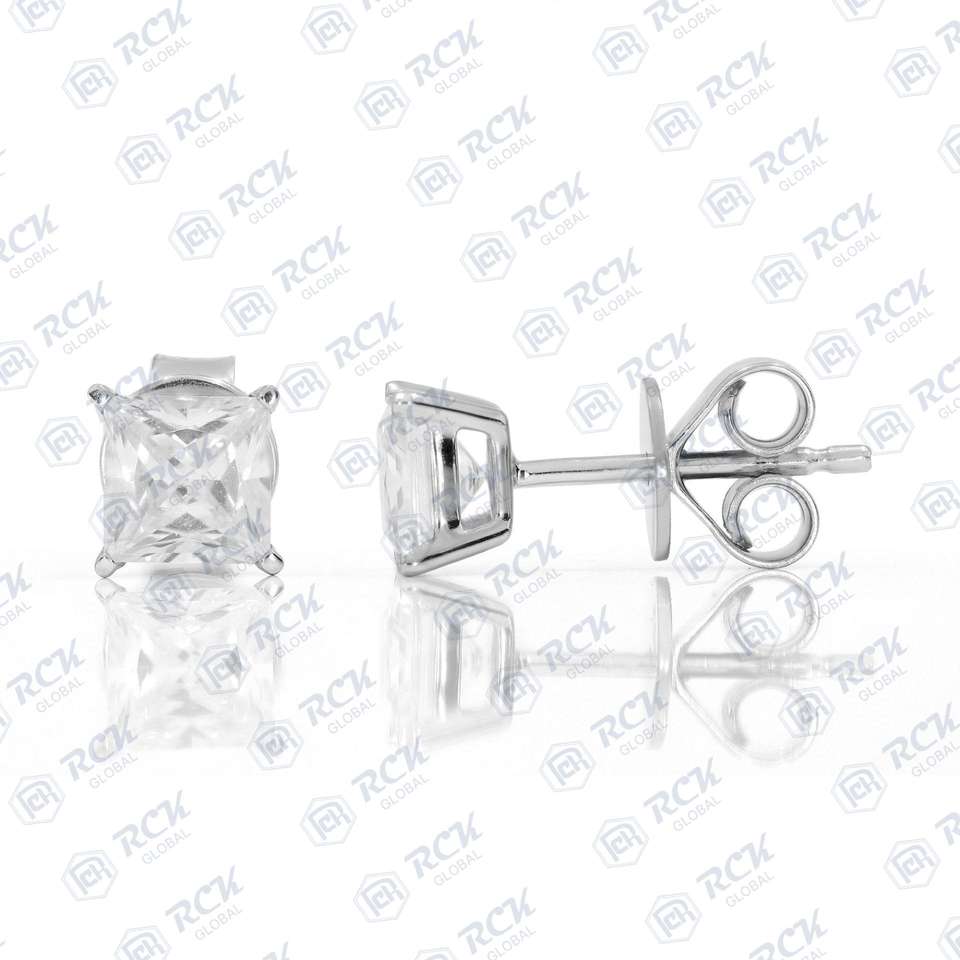 ต่างหูเพชรเม็ดเดี่ยวตัดเพชรรูปเจ้าหญิง tcw 3.00สำหรับผู้หญิง/เครื่องประดับของขวัญครบรอบสำหรับกระดุมเพชรของเธอ
