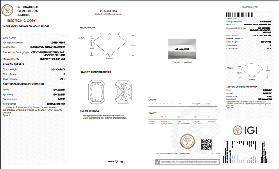เพชรโตในห้องทดลองขนาด3.01กะรัตได้รับการรับรองว่า IGI มีความคมชัดระดับ VS1หินในห้องทดลอง