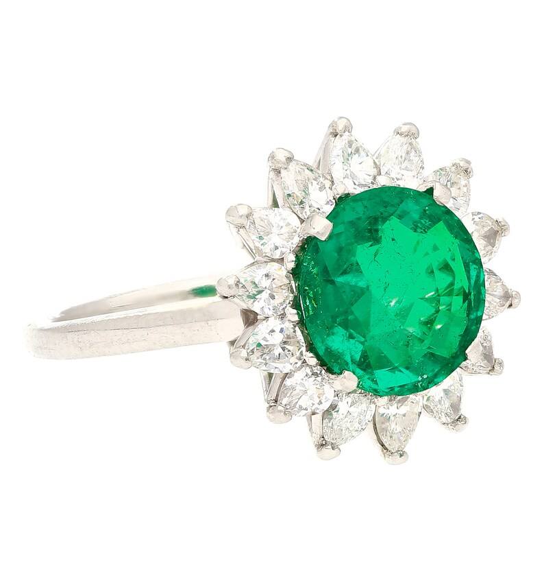 แหวนรัศมีเพชรและมรกตแบบโคลอมเบีย3.02กะรัตสำหรับผู้หญิงเครื่องประดับที่ได้รับการรับรองจากการเจียระไนทรงกลมสีเขียวสดใส