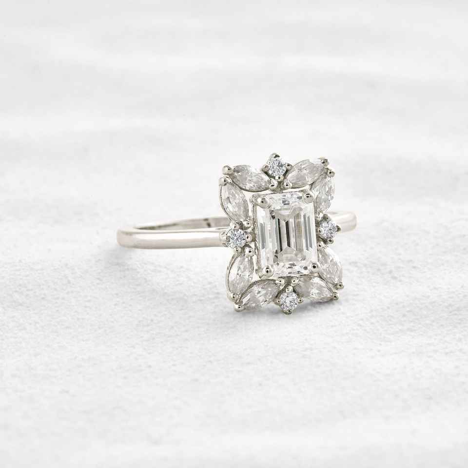 แหวนเพชร3.04กะรัตมรกตสำหรับปลูกในห้องแล็บเครื่องประดับแหวนหมั้นแบบคลัสเตอร์หรูหราสำหรับงานปาร์ตี้14K ทองคำขาว