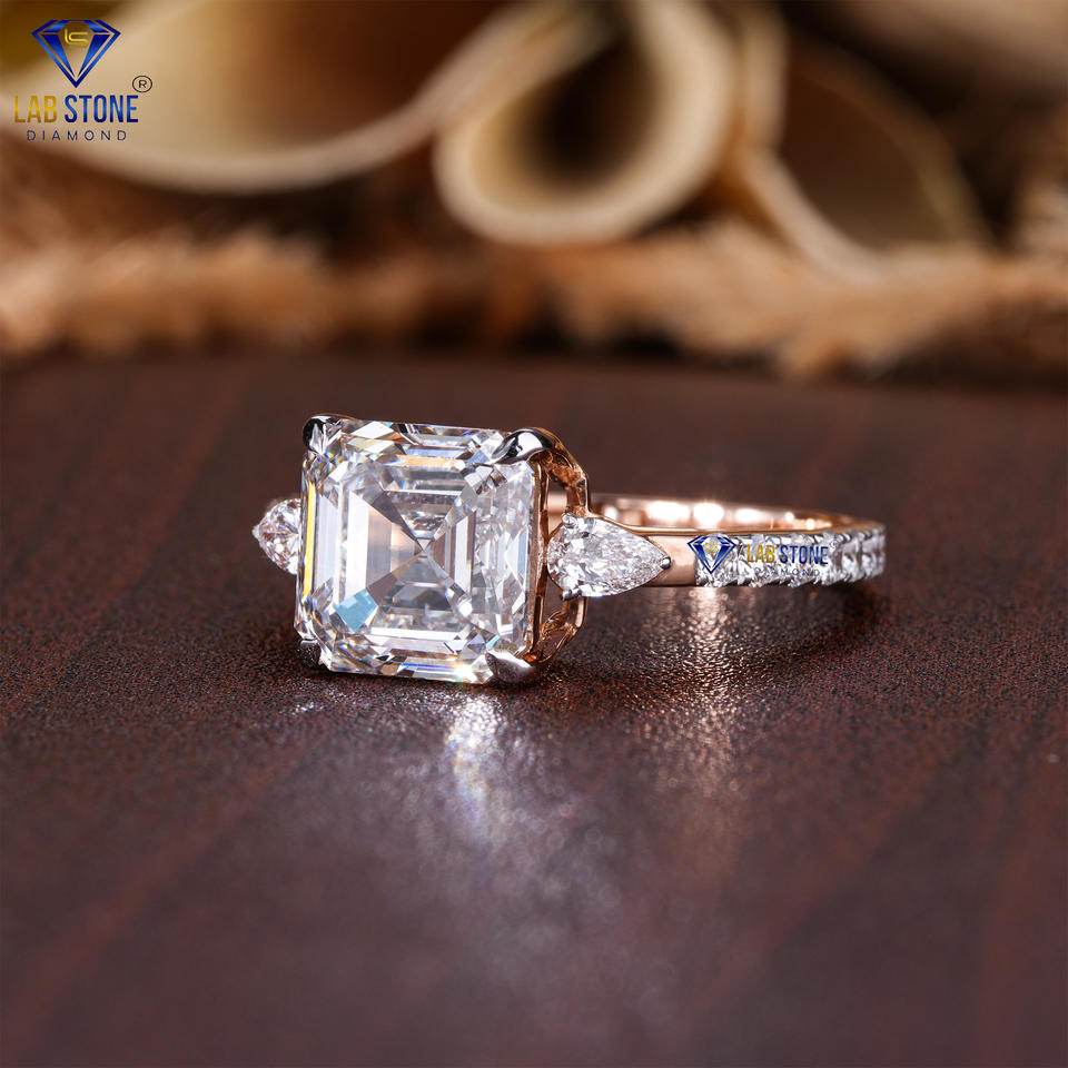 3.1 TDW Asscher, ลูกแพร์และรอบตัดแหวนเพชร18K กุหลาบทอง cvd/hpht เครื่องประดับหินในห้องปฏิบัติการ