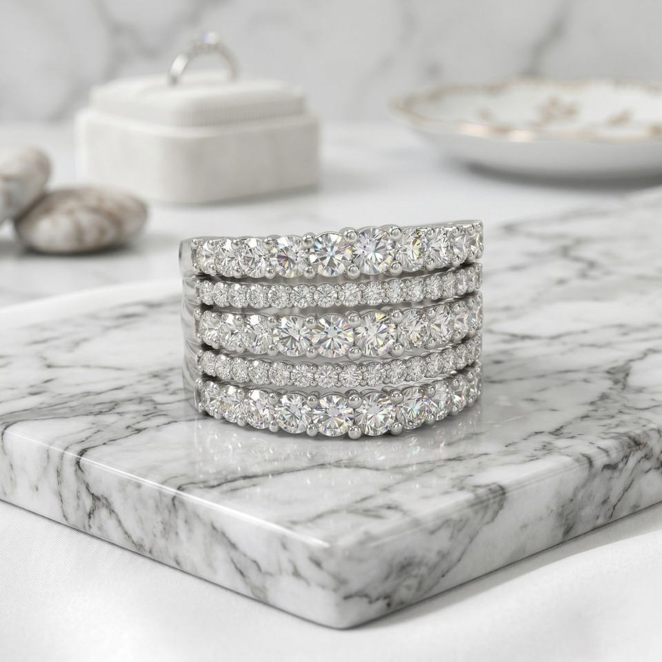 แหวนประดับเพชรทรงกลม 3.10 กะรัต แบบหลายแถว
