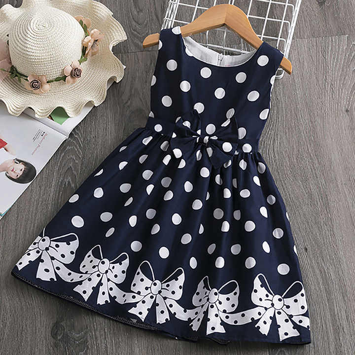 3-12 ปีชุดเดรสลายจุดสำหรับเด็กผู้หญิง 2020 ฤดูร้อนแขนกุดโบว์บอลชุดเสื้อผ้าเด็กชุดเจ้าหญิงเด็กเสื้อผ้าเด็ก