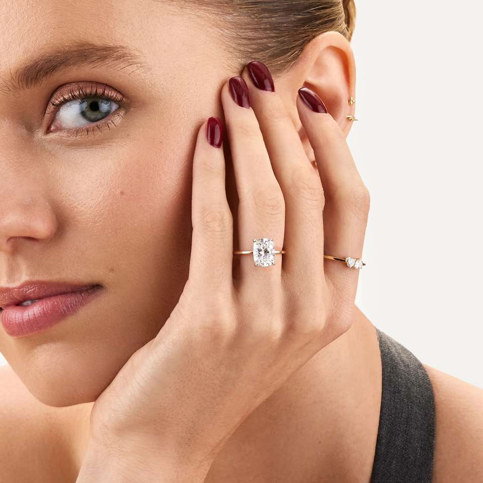 แหวนหมั้นเพชรโมอิสขนาด3.15 CT แบบตัดเป็นชิ้นยาวแหวนทองแบบสั่งทำสำหรับขอแต่งงาน