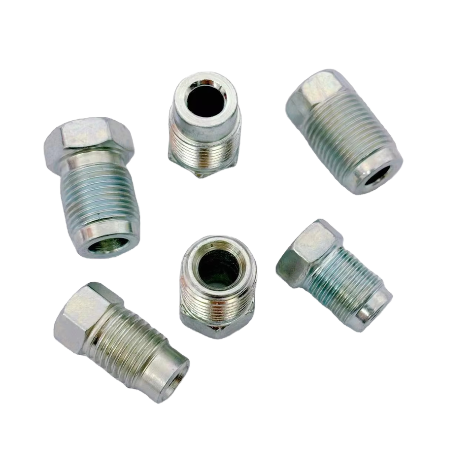 ข้อต่อสายเบรกเหล็กหกเหลี่ยมชุบสังกะสีความแข็งแรงสูง 3/16 -1/4 -5/16 M10M12M14 เกลียวเต็มตัวแบบล็อคตัวเอง