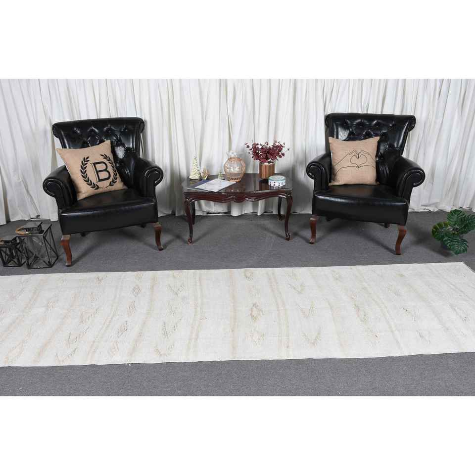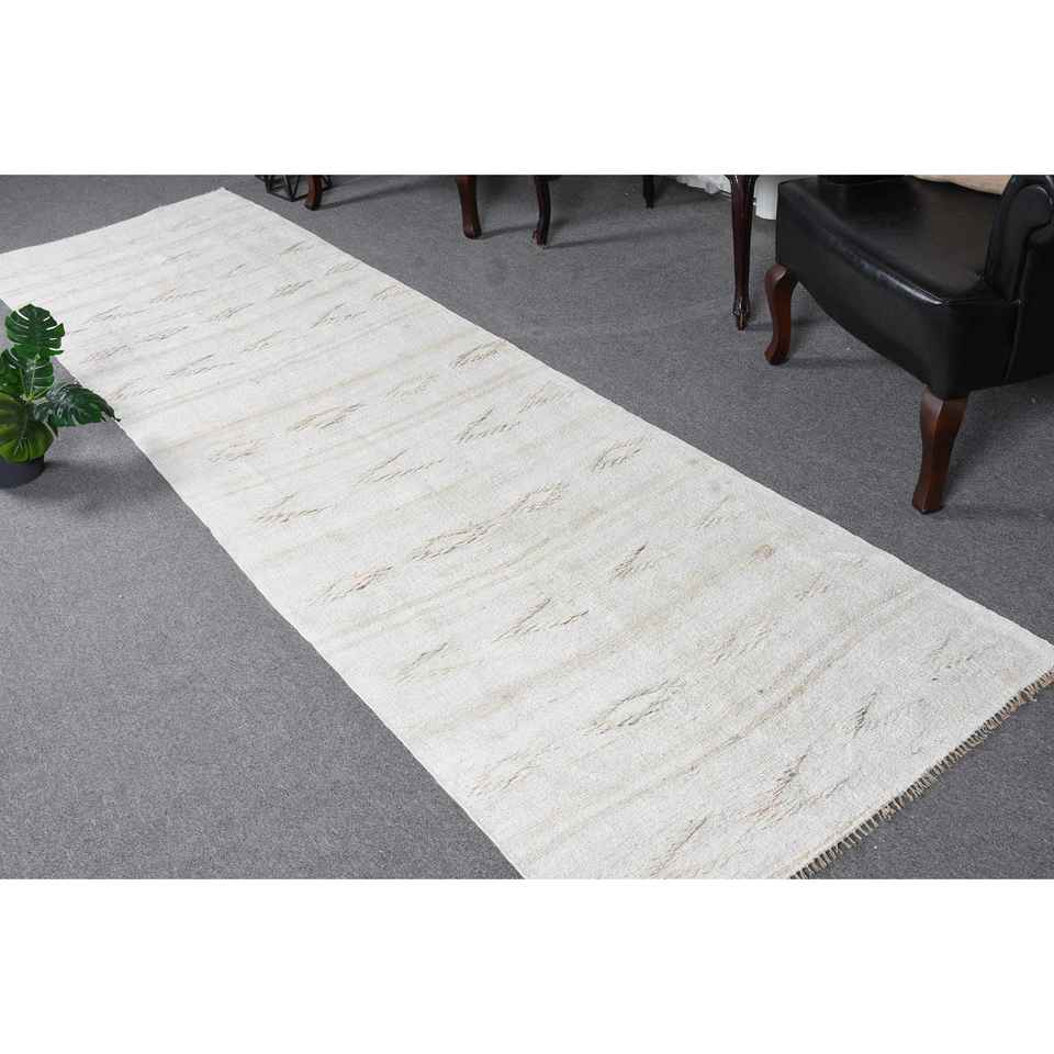 พรมขนาด 3.1x11.1 ฟุต, พรมคิลิมตุรกี, พรมขนสัตว์สีขาววินเทจ