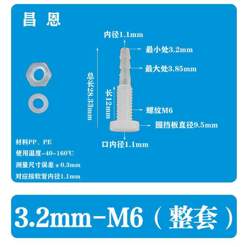 ชุดอุปกรณ์เชื่อมต่อท่อพลาสติกแบบครบชุด 3.2-M6 พร้อมแผ่นเชื่อมต่อแบบครึ่งทะลุ ตัวลดขนาดตรง แบบเกลียวนอก รูปตัวที/น็อต สำหรับต่อท่อ
