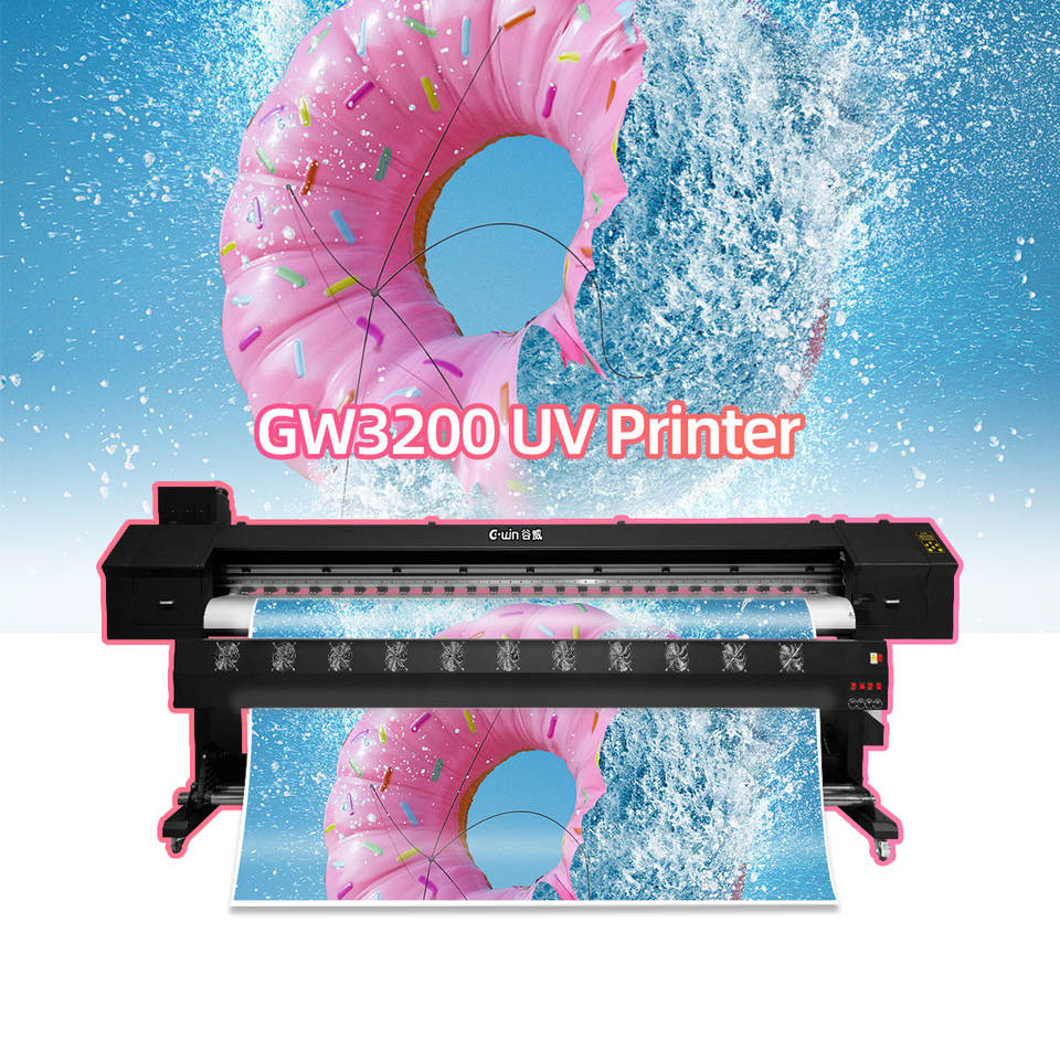 เครื่องพิมพ์ยูวี3.2เมตรสีขาว CMYK 3.2เมตรทำให้เครื่องพิมพ์ยูวีม้วนเป็นม้วน