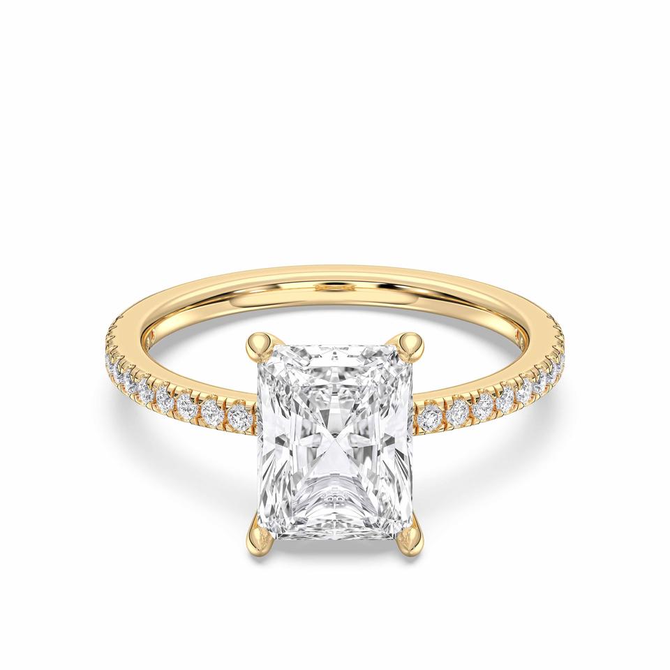 แหวนหมั้นเพชรสีทอง3.20กะรัตสร้างแหวนหมั้นทรงกลมที่ตัดด้วยความเน้นสีทองให้กับเธอ