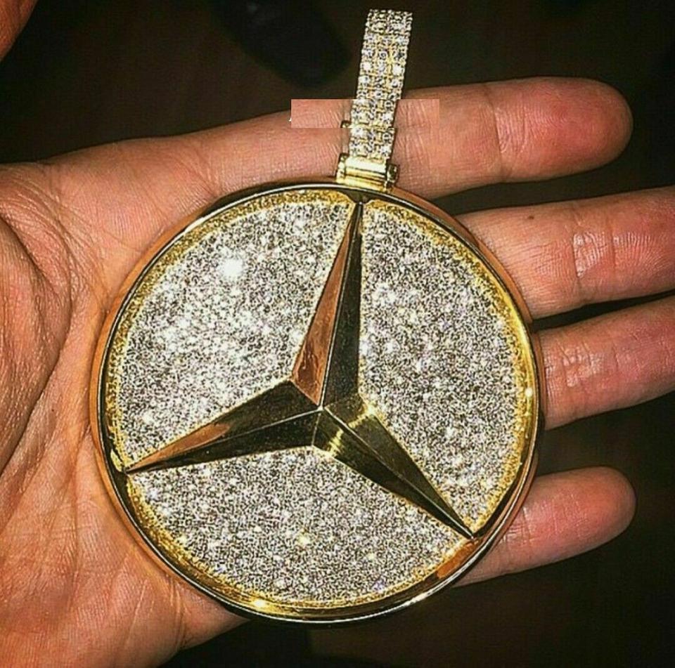 จี้เพชรทรงกลม Mercedes สำหรับรถยนต์ประดับโลโก้14K สีเหลืองทอง3.20CT