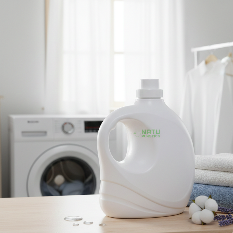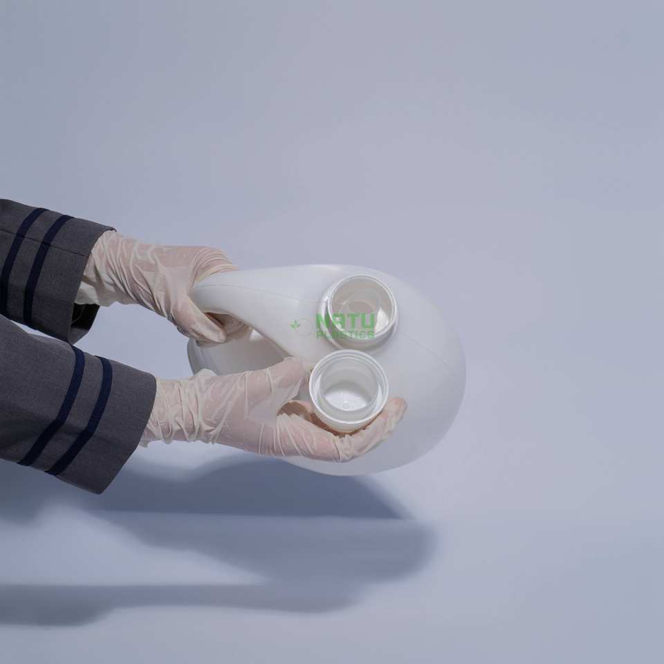 ถังพลาสติก HDPE ขนาด 3.2 ลิตร พร้อมฝาเกลียว สำหรับบรรจุภัณฑ์น้ำยาทำความสะอาดและสารเคมี ผลิตจากโรงงานในเวียดนาม