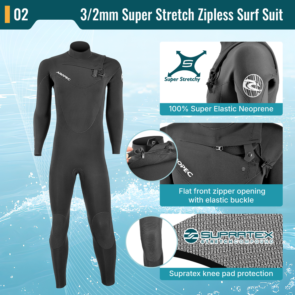 ชุดเว็ทสูทกันลมแบบซิปหน้า หนา 3.0 มม. ระบายอากาศได้ดีเยี่ยม พร้อมโลโก้ด้านหน้า เหมาะสำหรับเล่นเซิร์ฟและกีฬาทางน้ำ