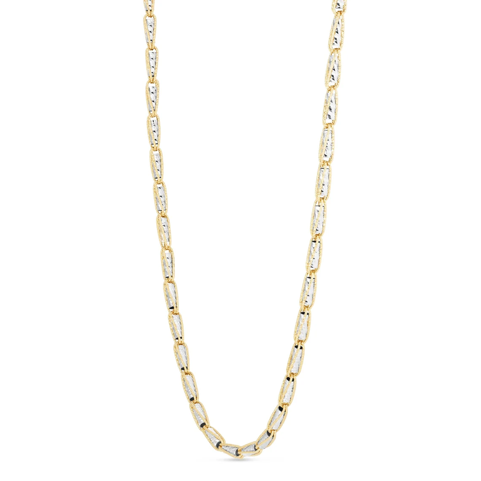 3.2mm Two Tone Diamond Cut Link Chain Necklace Real 18k Yellow Gold and White Gold Plated Chain for Women's Fashion Jewelry