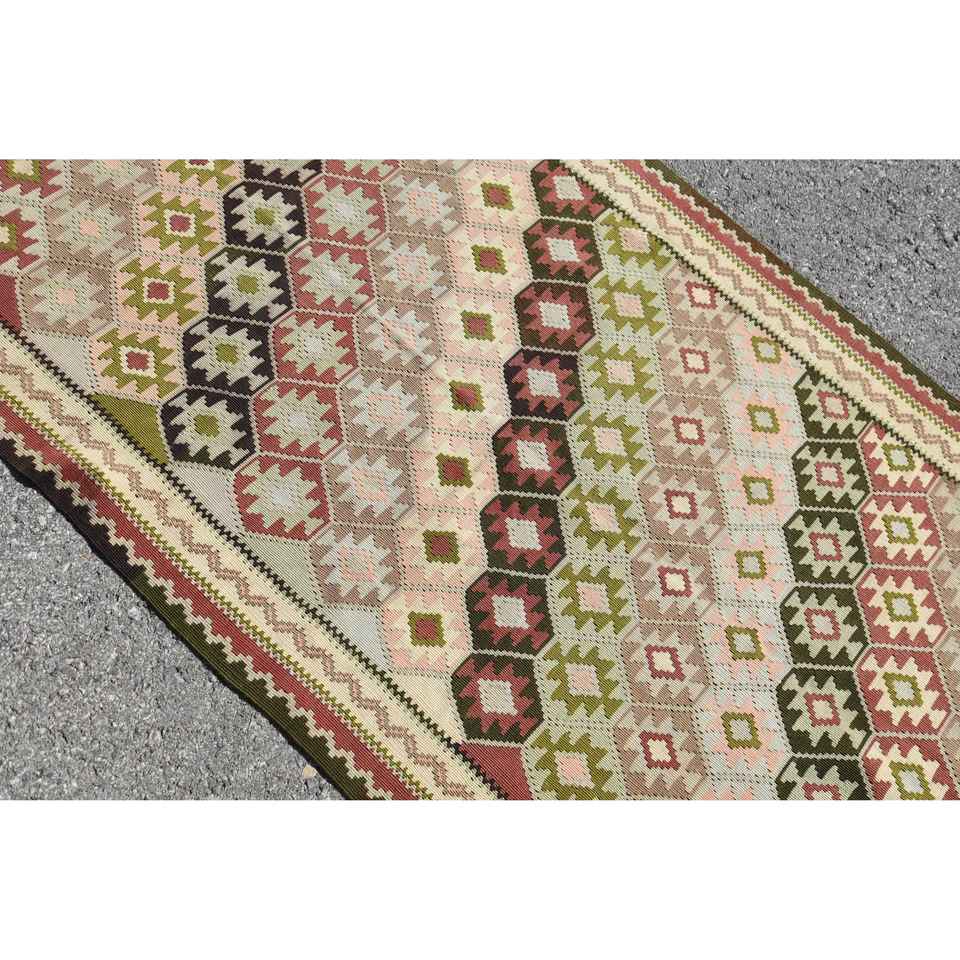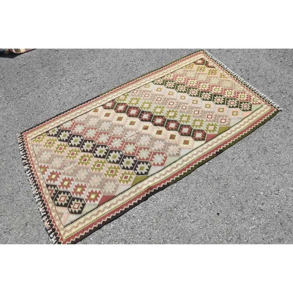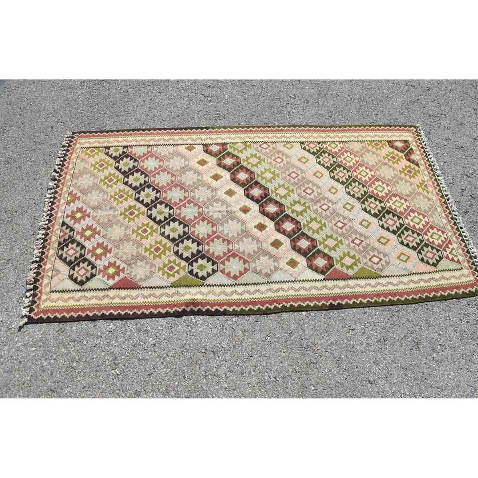 พรมขนาด 3.2x6 ฟุต, พรมตุรกีโบราณ, พรมขนสัตว์ลายจุดสีเบจแดง