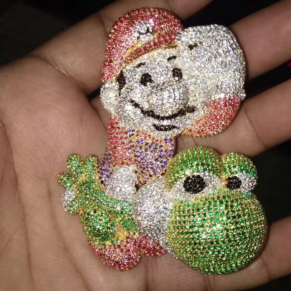 จี้รูปกระต่ายการ์ตูนประดับโมอิสซาไนต์แท้ทรงกลม 3.30 กะรัต ชุบเงิน สไตล์ฮิปฮอป เครื่องประดับสำหรับงานปาร์ตี้