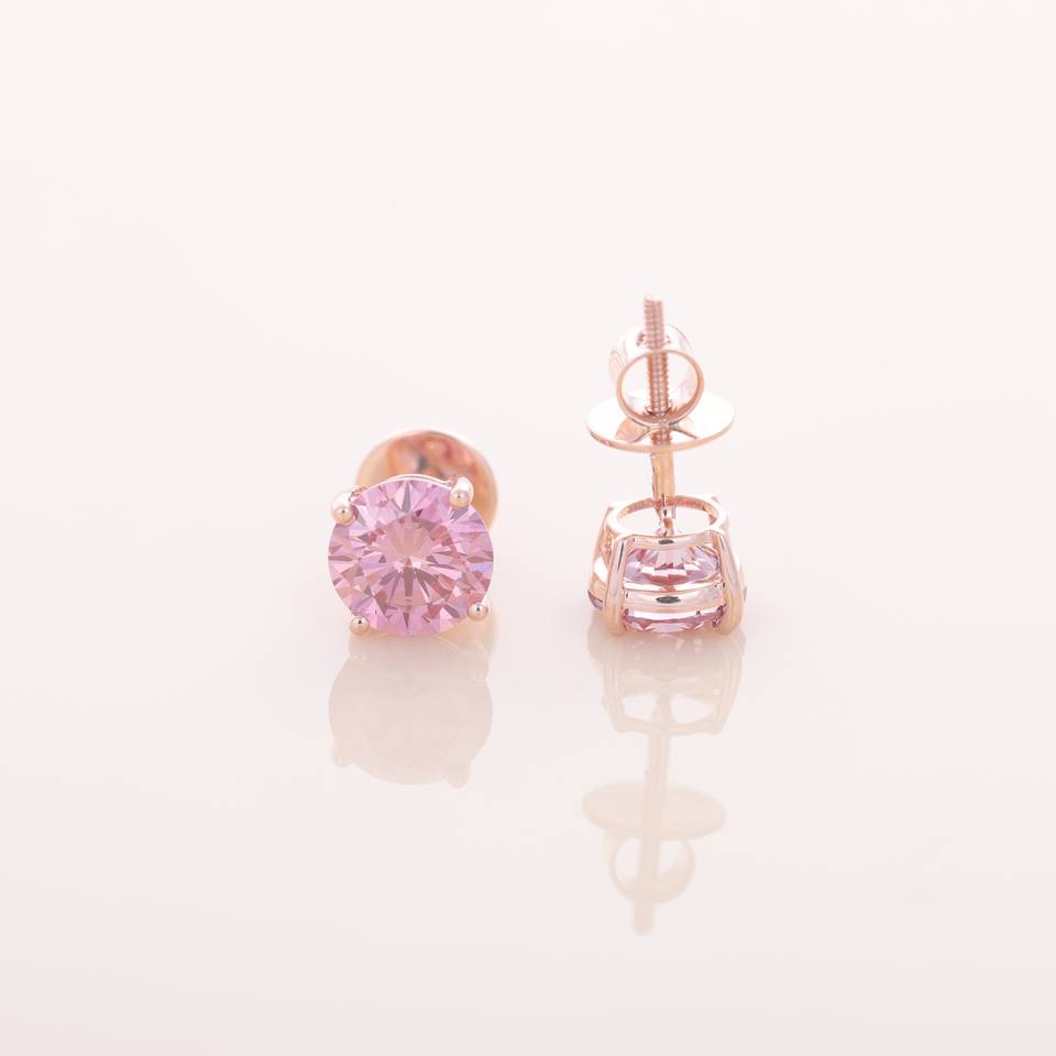 ต่างหูเพชรทรงกลมสีชมพู 3.38 กะรัต รูปทรงเรขาคณิต ได้รับการรับรองจาก IGI เงินแท้ 925 สำหรับงานแต่งงานและงานหมั้น