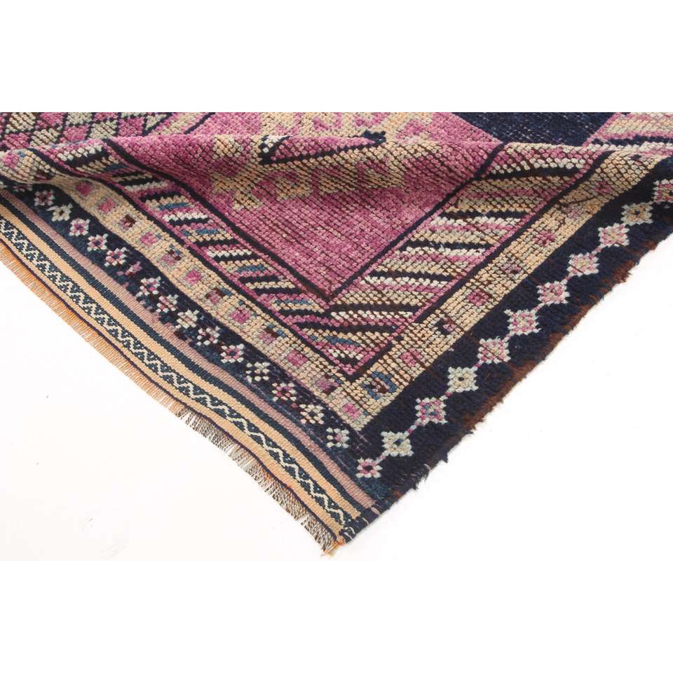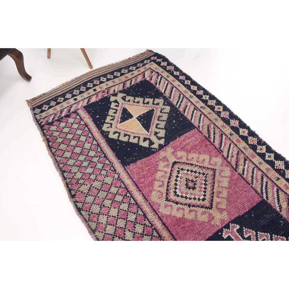 พรมวินเทจตุรกีขนาด 3.3x8.8 ฟุต, พรมปูพื้น, พรมขนสัตว์สีชมพู