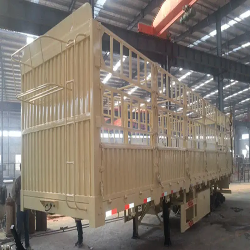 รถพ่วงบรรทุกสินค้าแบบมีรั้ว 3/4 เพลา 60 ตัน สำหรับขาย
