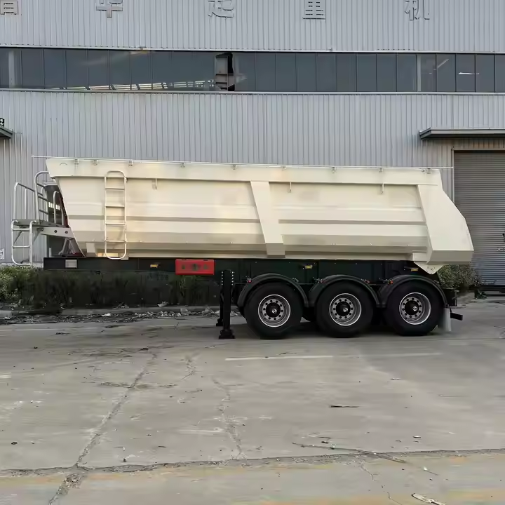 ระบบกันสะเทือนอากาศเหล็กกล้าคาร์บอน Q345 3 4เพลารถดัมพ์ท้ายรถกึ่งพ่วง50-80ตันรถดัมพ์ไฮดรอลิก