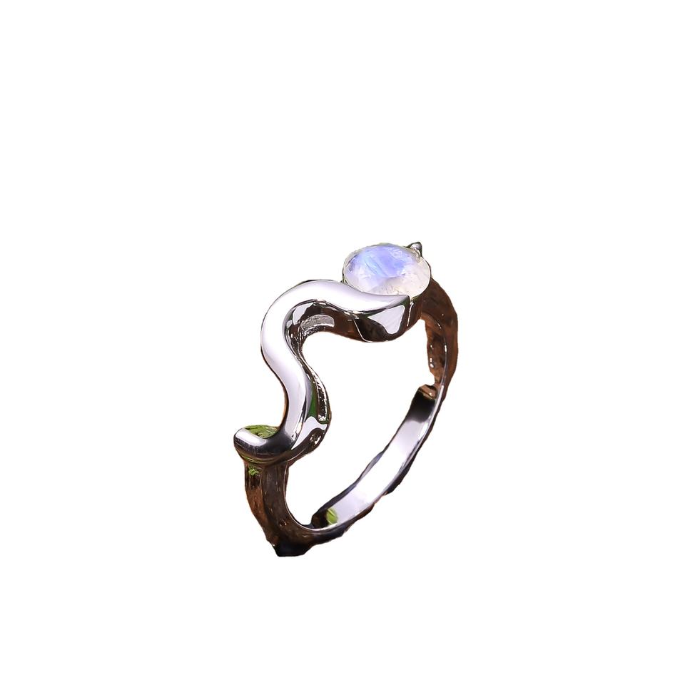 แหวนไฟสีน้ำเงิน3.4กรัม92.5สเตอร์ลิงสีรุ้งธรรมชาติดีไซน์เรียบง่ายล่าสุด