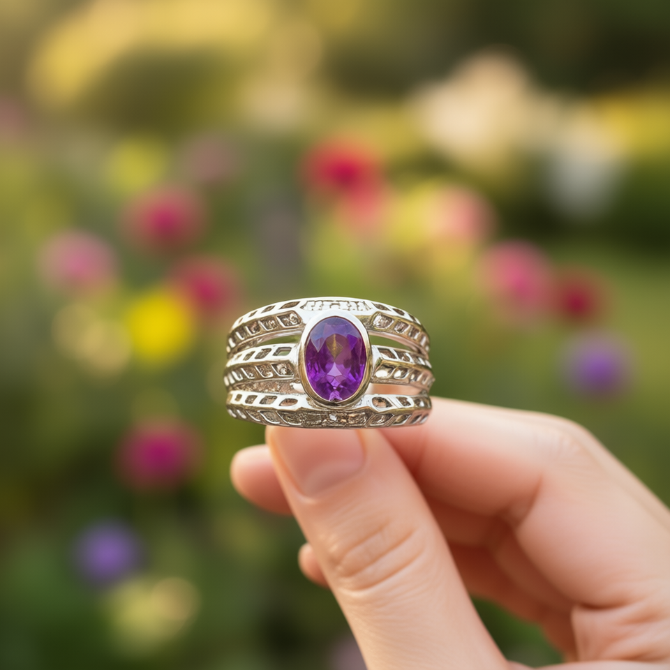 แหวนแฟชั่นอเมทิสต์ 3.4 กรัม