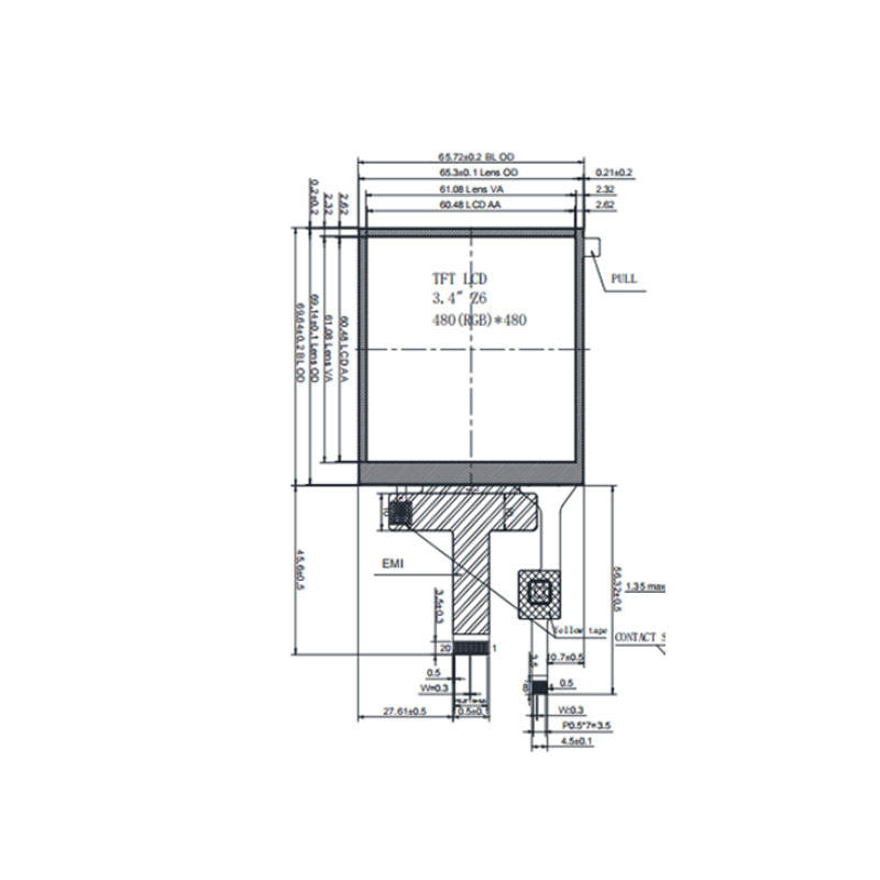 หน้าจอความสว่างสูง3.4นิ้ว480x480 MIPI จอแสดงผล LCD ขนาด850nits IPS TFT สำหรับ PDA มือถือ