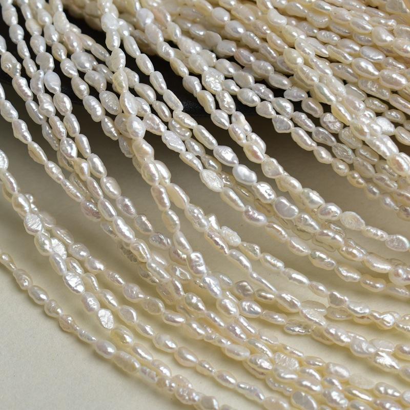 ไข่มุกน้ำจืดทรงบาร็อคสีขาวเงาสองด้าน ขนาด 3-4 มม. สำหรับทำสร้อยคอและสร้อยข้อมือ DIY