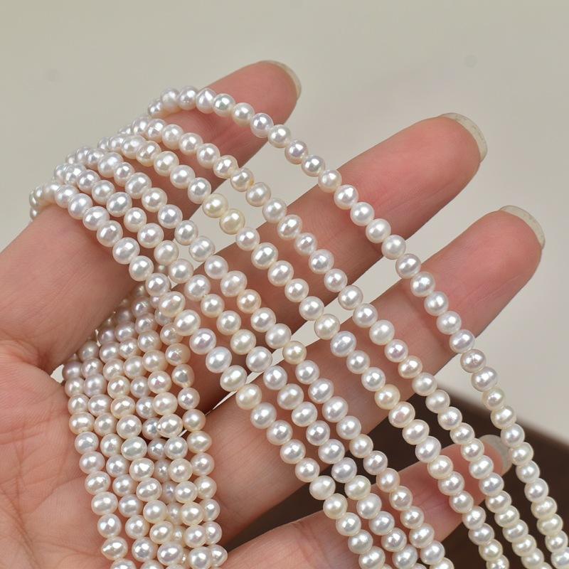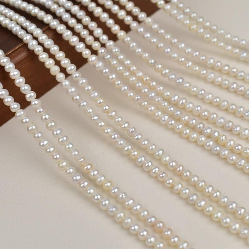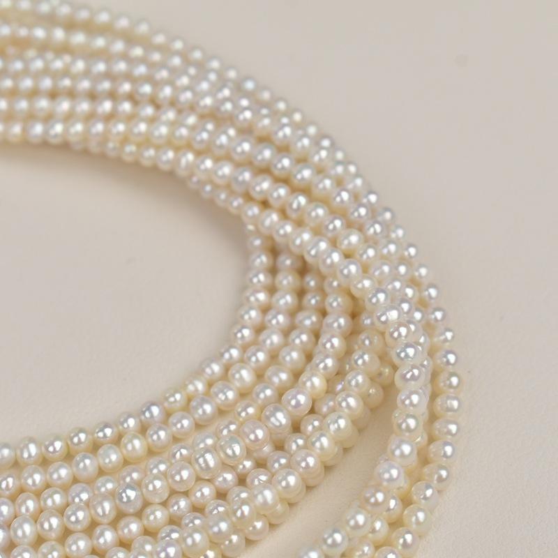 สร้อยคอมุกน้ำจืดธรรมชาติขนาด 3-4 มม. พร้อมสายต่อทอง 18K ปรับความยาวได้ แบบล็อคกระดูก จาก Zhuji