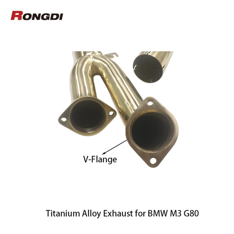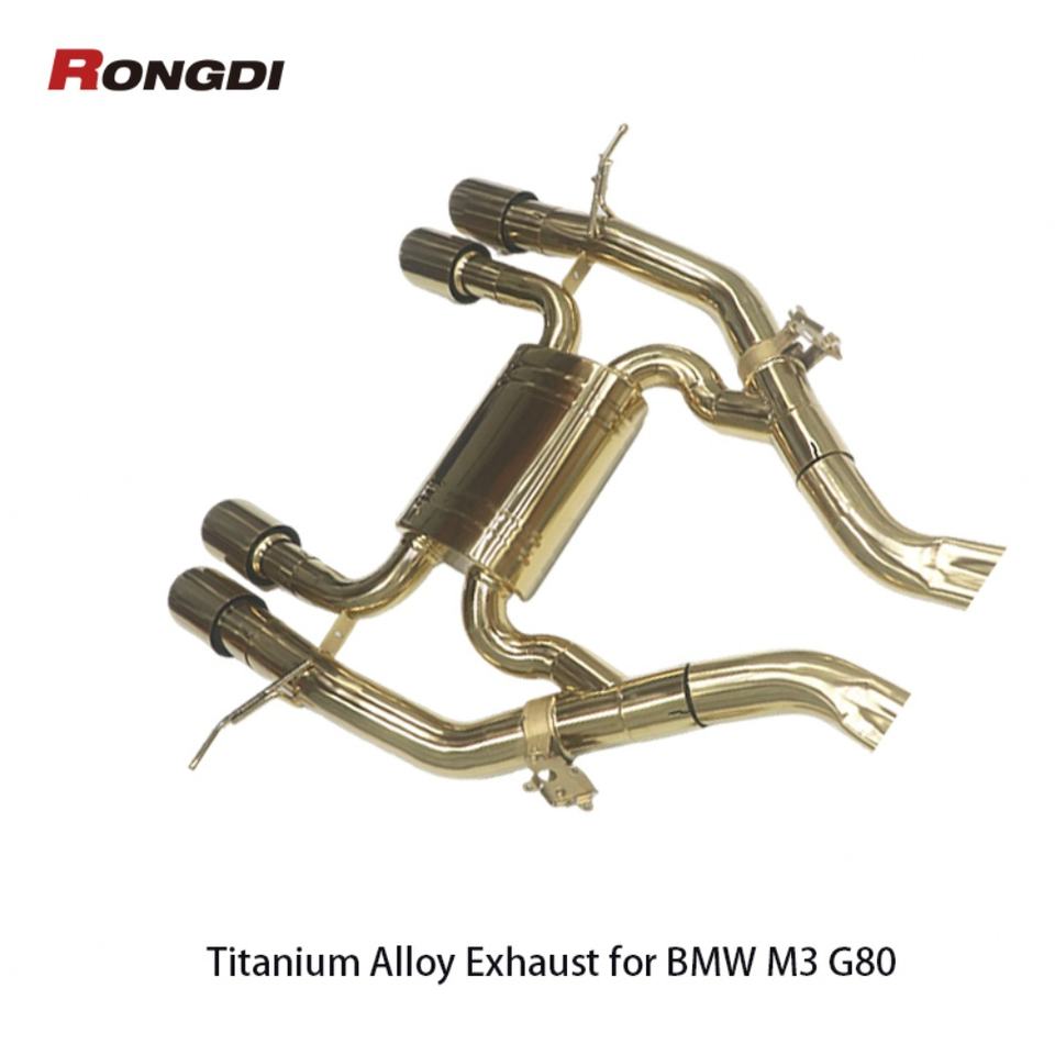 ท่อไอเสีย RONGDI Valved High Flow หนา 1.5 มม. ขนาด 3.5"-2.75" ผลิตจากไทเทเนียมอัลลอยด์สีทอง สำหรับ M3 G80/M4 G82 S58 3.0T ปี 2021-2024