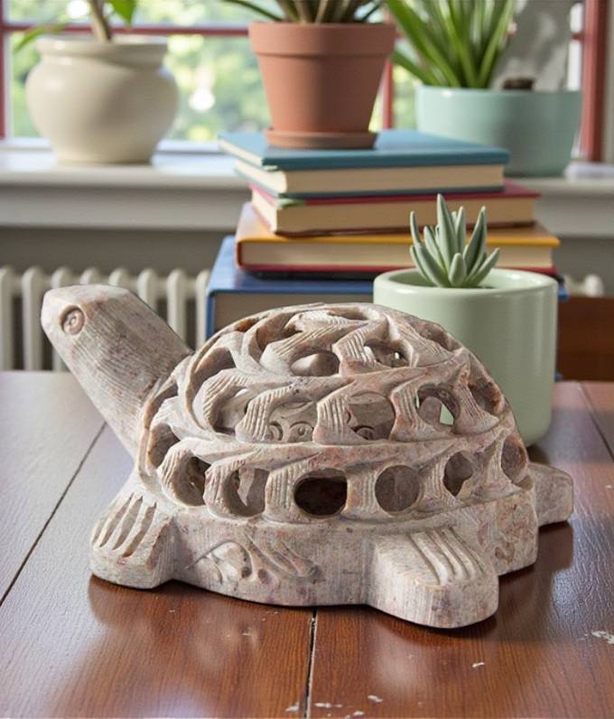 รูปปั้นเต่าหินสบู่ธรรมชาติขนาด 3.5 นิ้ว แกะสลักด้วยมือ – ของตกแต่งหินสำหรับบ้าน สำนักงาน และของขวัญ