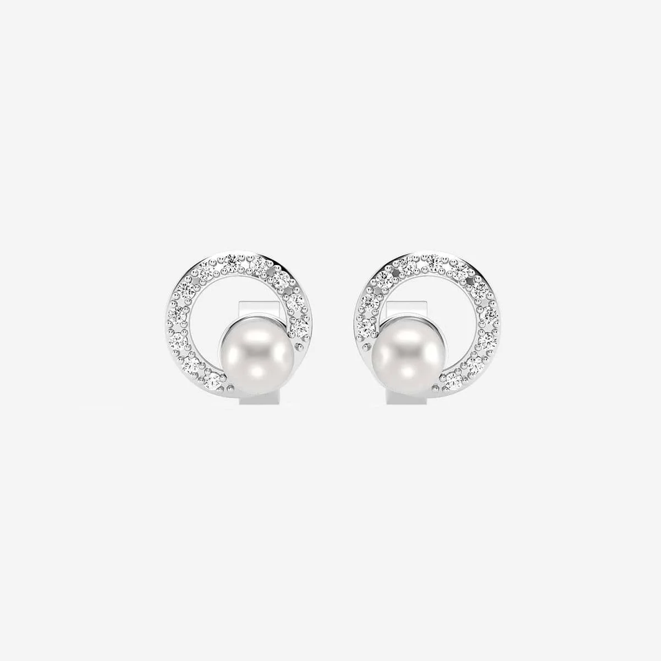 ต่างหูมุกน้ำจืดเพาะเลี้ยงขนาด 3.5 ถึง 4.0 มม. และเพชรเพาะเลี้ยงในห้องปฏิบัติการ 1/10 กะรัต รูปทรงวงกลม สำหรับผู้หญิง ต่างหูแบบห่วงอย่างดี