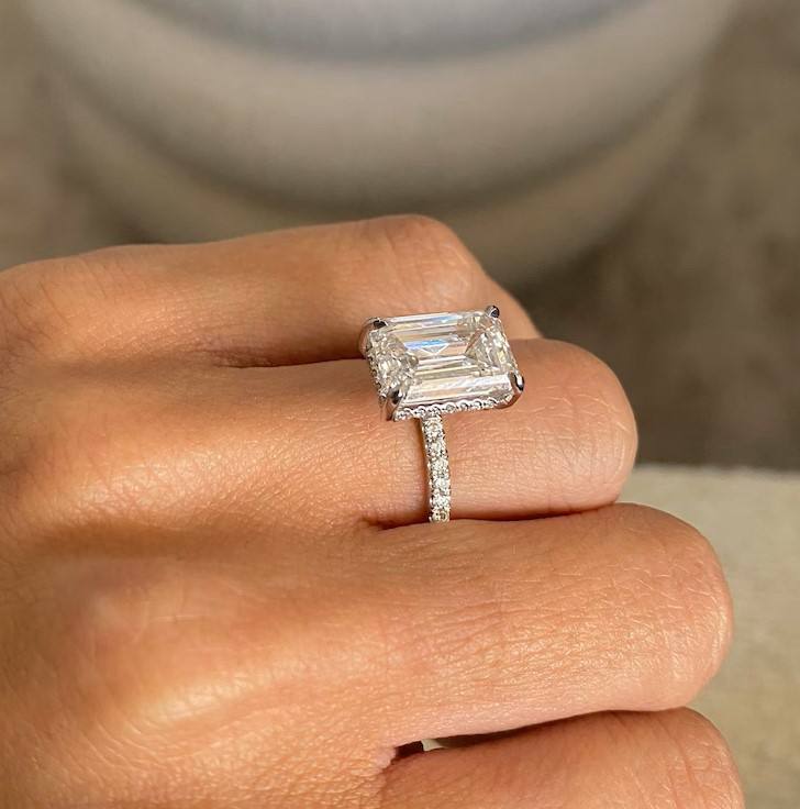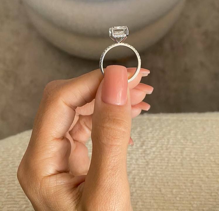 แหวนเพชรเม็ดเดี่ยวเพชรกะรัตสำหรับปลูกในห้องแล็บพลอยมรกต3.50กะรัต