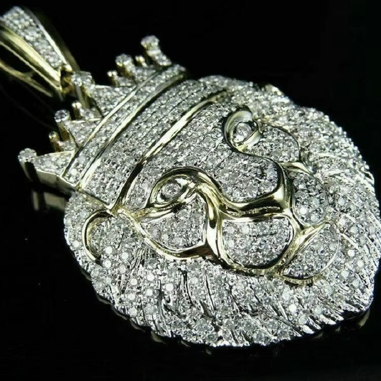 จี้ตัวการ์ตูนเพชรโมอิสแท้14K เคลือบทองสองสี3.50Ct ตัดเป็นทรงกลม