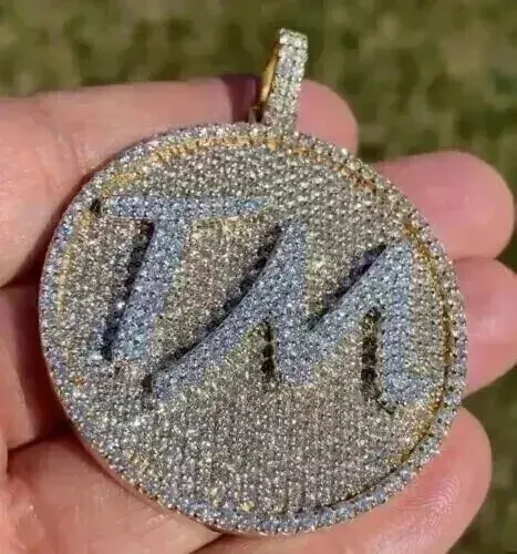 จี้เพชรโมอิสซาไนต์ทรงกลม 3.50 กะรัต ตัวอักษรแบบกำหนดเอง เงินแท้ชุบทองคำขาว 14K สำหรับผู้หญิง