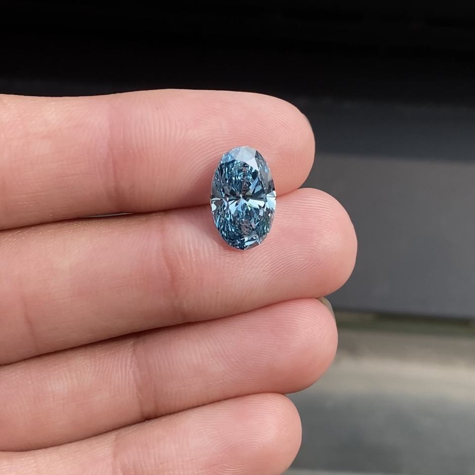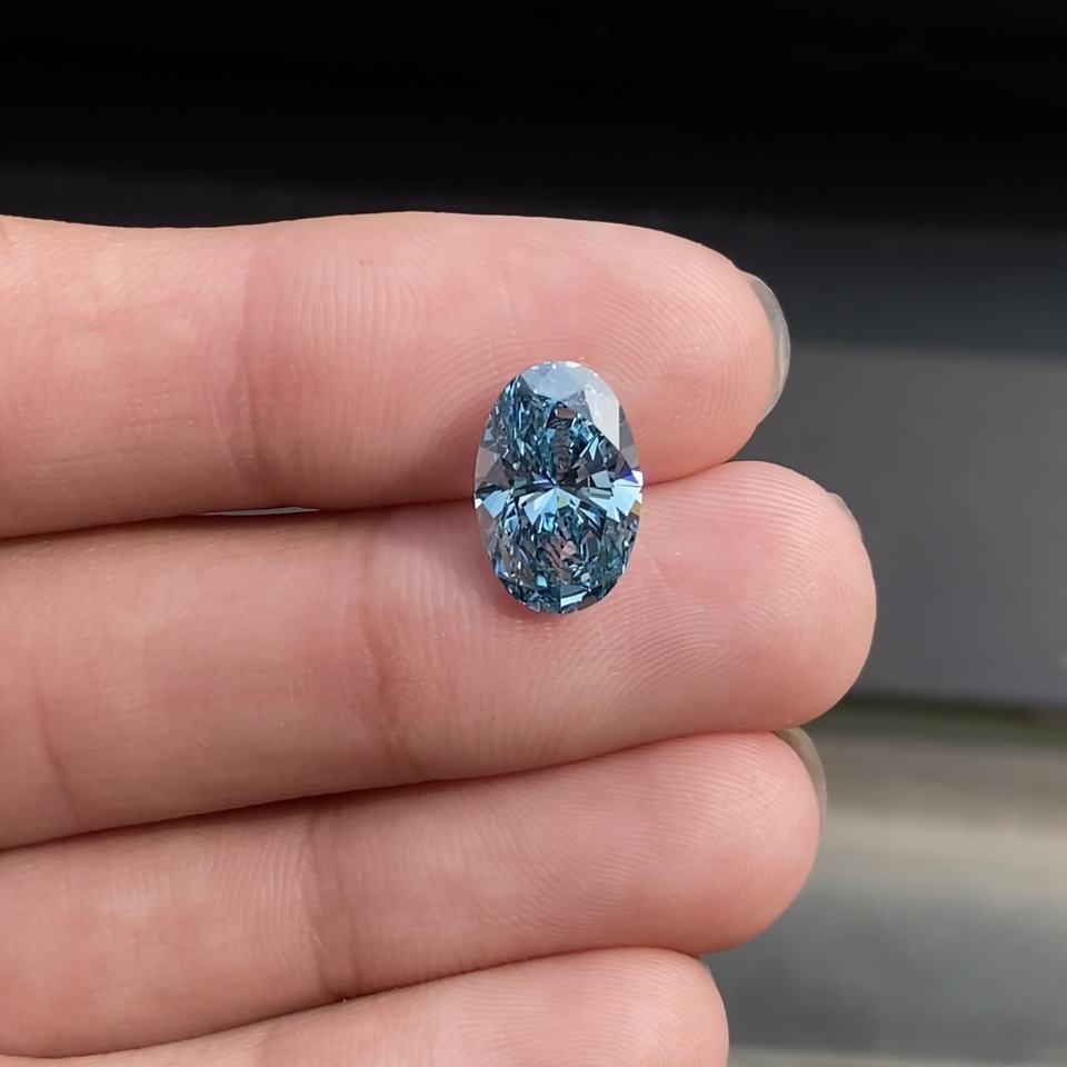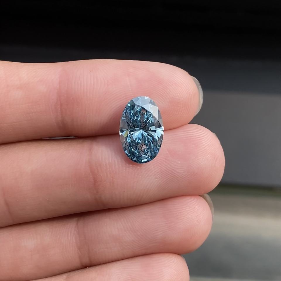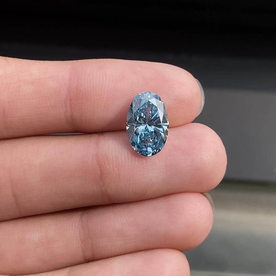 เพชรทรงรีสีน้ำเงิน 3.52 กะรัต ผลิตในห้องปฏิบัติการ สีแฟนซีสดใส ได้รับการรับรองจาก IGI สำหรับการทำเครื่องประดับ
