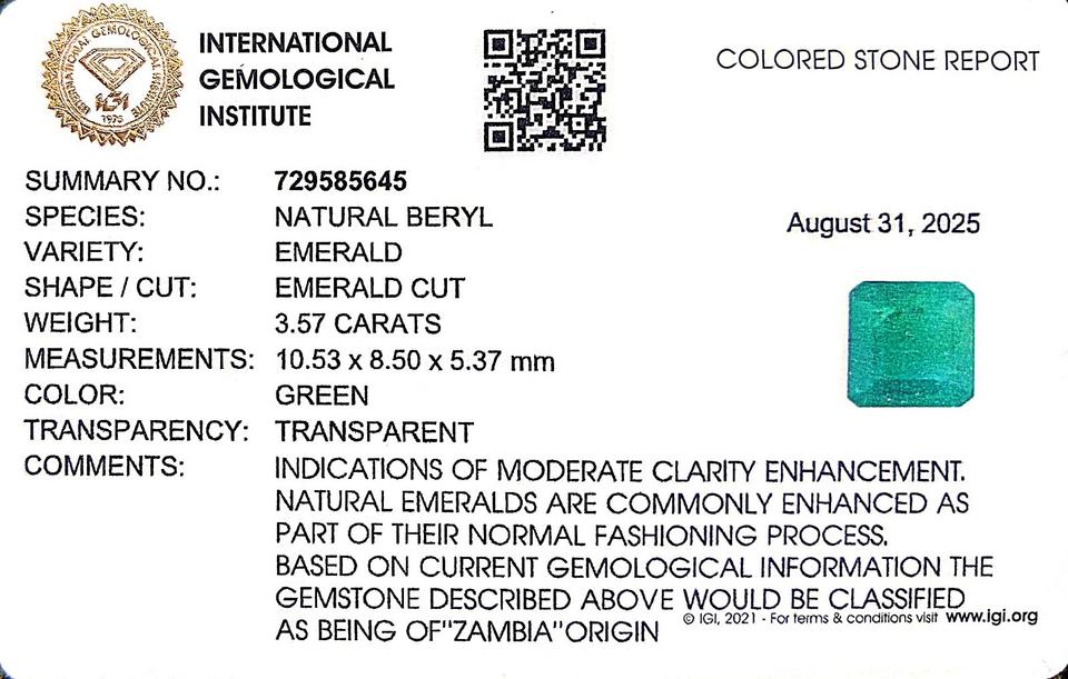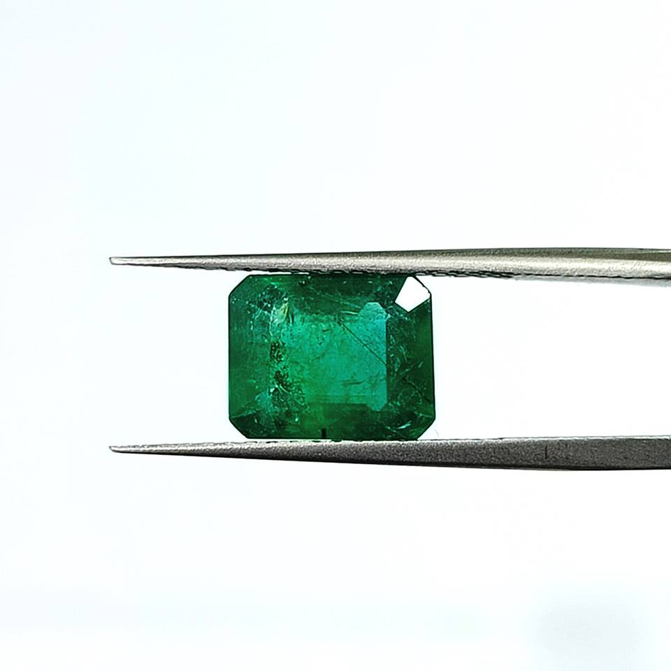 มรกตสีเขียวทรงแปดเหลี่ยม 3.57 กะรัต จากแซมเบีย พลอยหลวม