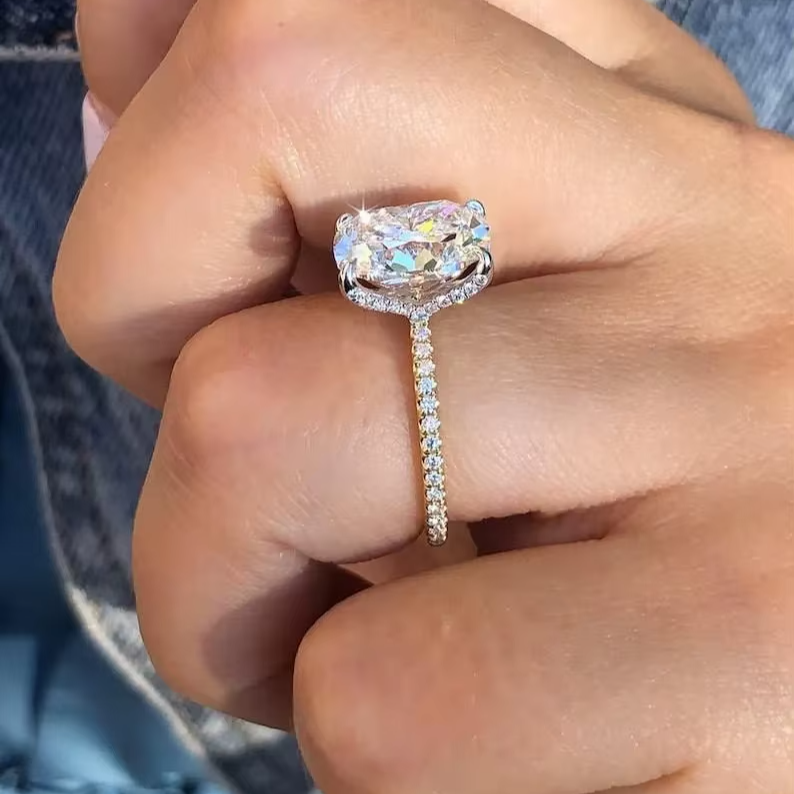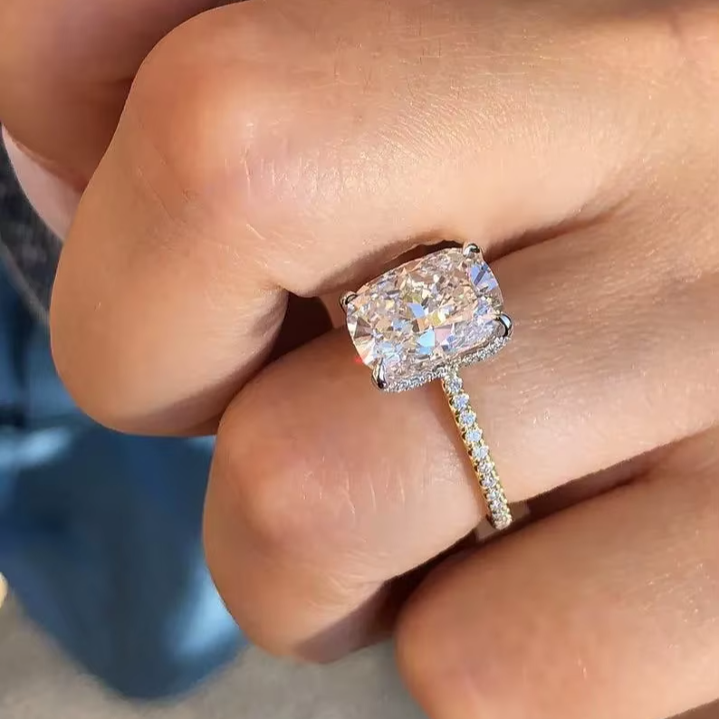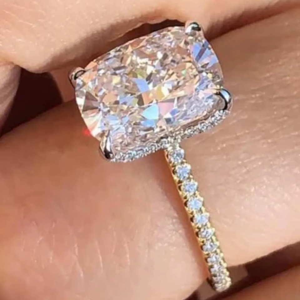 แหวนหมั้นเพชรทรงคุชชั่น น้ำหนัก 3.5 กะรัต สี E ความสะอาด VVS2 ได้รับการรับรองจาก IGI ทำจากทอง 10K ของขวัญวันครบรอบแต่งงาน