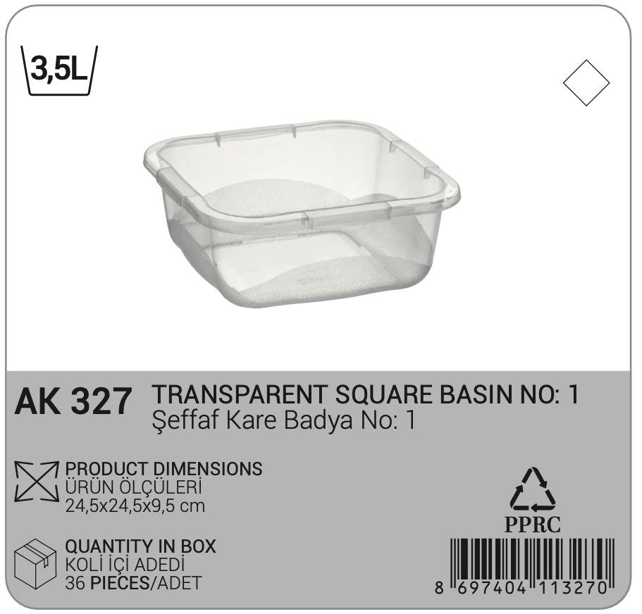 อ่างล้างจานสี่เหลี่ยมใสอเนกประสงค์ความจุ3.5L อ่างล้างจานสำหรับล้างผักผลไม้