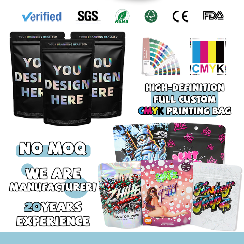 ถุงพลาสติกแบบตั้งได้ ขนาด 3.5 กรัม 7 กรัม 14 กรัม แบบกำหนดเองได้ พร้อมโลโก้ของคุณเอง ป้องกันกลิ่น แบบ Doypack สำหรับบรรจุภัณฑ์ขนมกัมมี่ ถุงไมลาร์ 3.5 สำหรับธุรกิจขนาดเล็ก