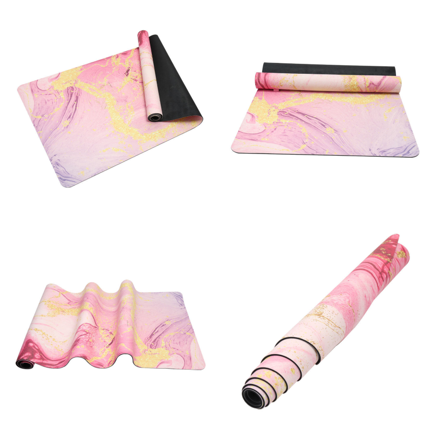 เสื่อโยคะกันลื่นกันน้ำหนา 3.5 มม./5 มม. รูปทรงสี่เหลี่ยมผืนผ้า ทำจากยางและวัสดุหนังกลับ ทำความสะอาดง่าย พร้อมสายสะพายสำหรับพกพา