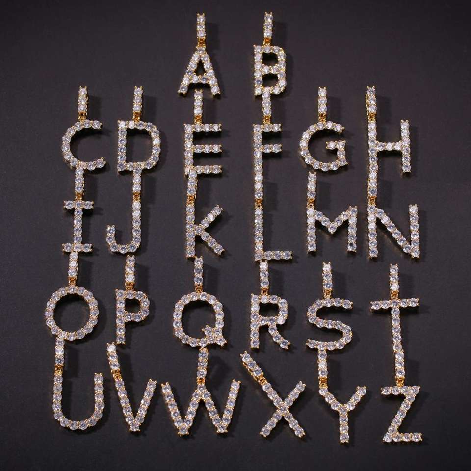 สร้อยคอพร้อมจี้รูปตัวอักษรฮิปฮอป A-Z เริ่มต้นทำจาก CZ ขนาด3.5มม.