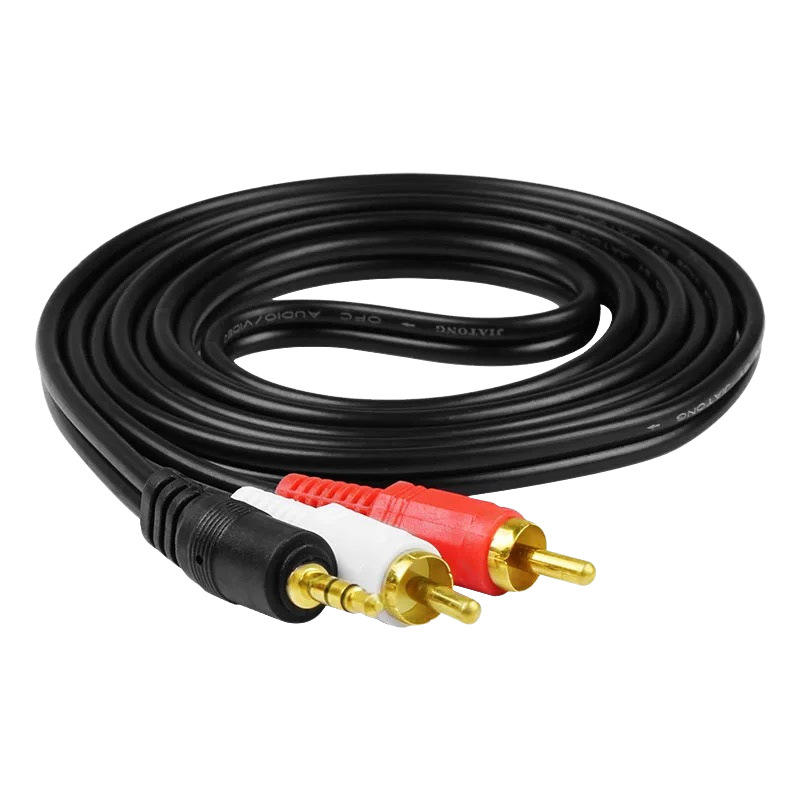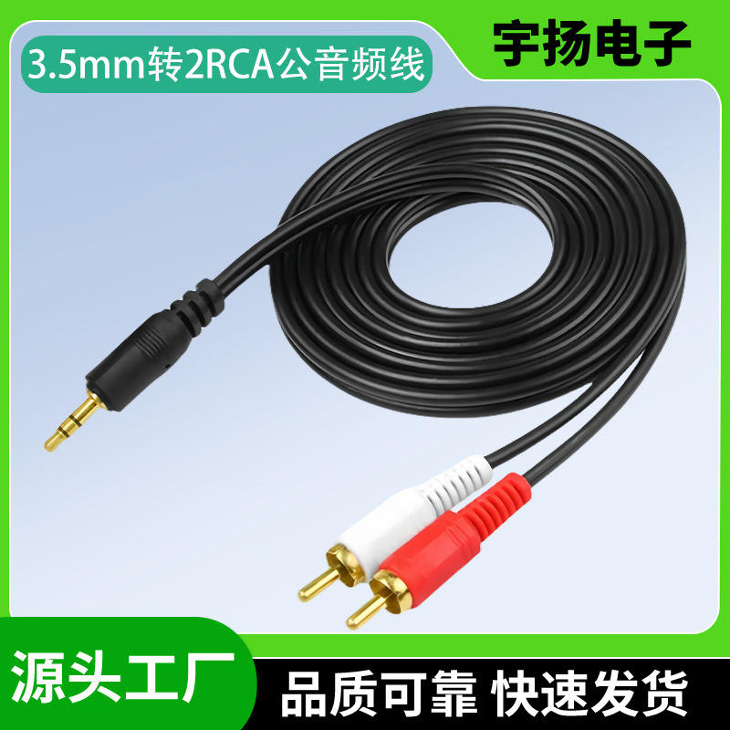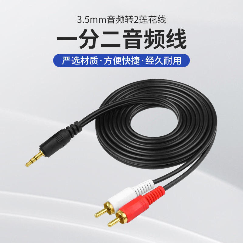สายเคเบิลเสียงและวิดีโอขนาด 3.5 มม. ถึง 2rca ความยาว 1.5 ม. สำหรับโทรศัพท์ mp3 แท็บเล็ต แล็ปท็อป ไปยังลำโพง ทีวี แอมพลิฟายเออร์