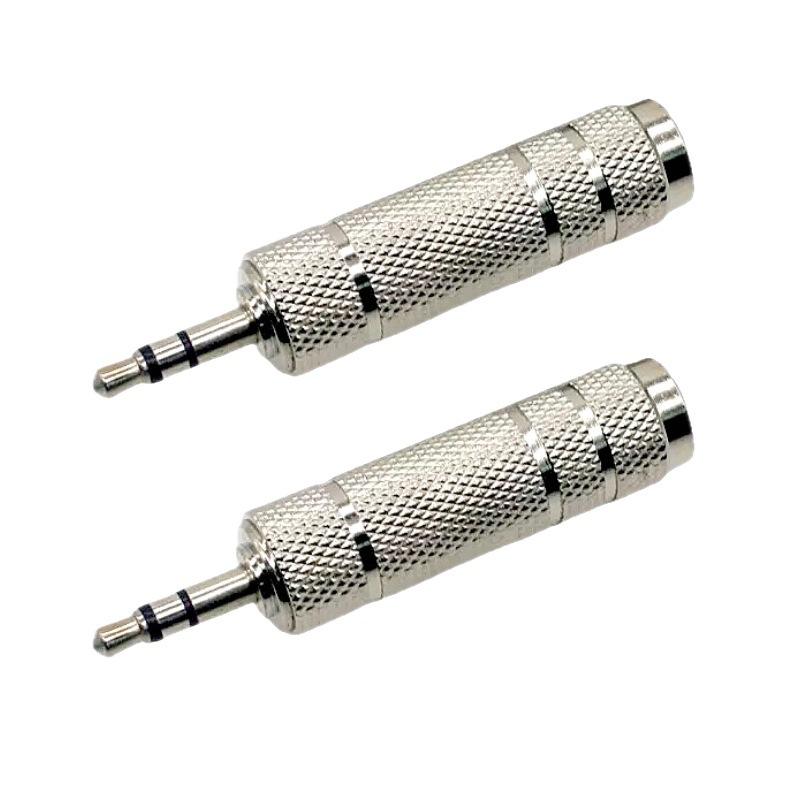 3.5 มม. ถึง 6.35 มม. อะแดปเตอร์เสียงสเตอริโอปลั๊กโลหะสำหรับกีตาร์เปียโนเครื่องดนตรี YY-1081 ชุบนิกเกิล
