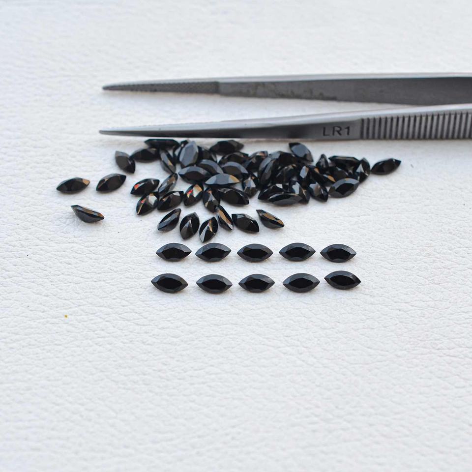 พลอยออนิกซ์สีดำธรรมชาติทรงมาร์ควิสเจียระไนขนาด 3.5x7 มม. ขายส่งจำนวนมาก สำหรับทำเครื่องประดับ พร้อมสั่งซื้อ